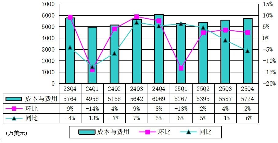 Yalla在2025年第四季度成本与费用为5720万美元,较上年同期的6070万美元下降5.7%。