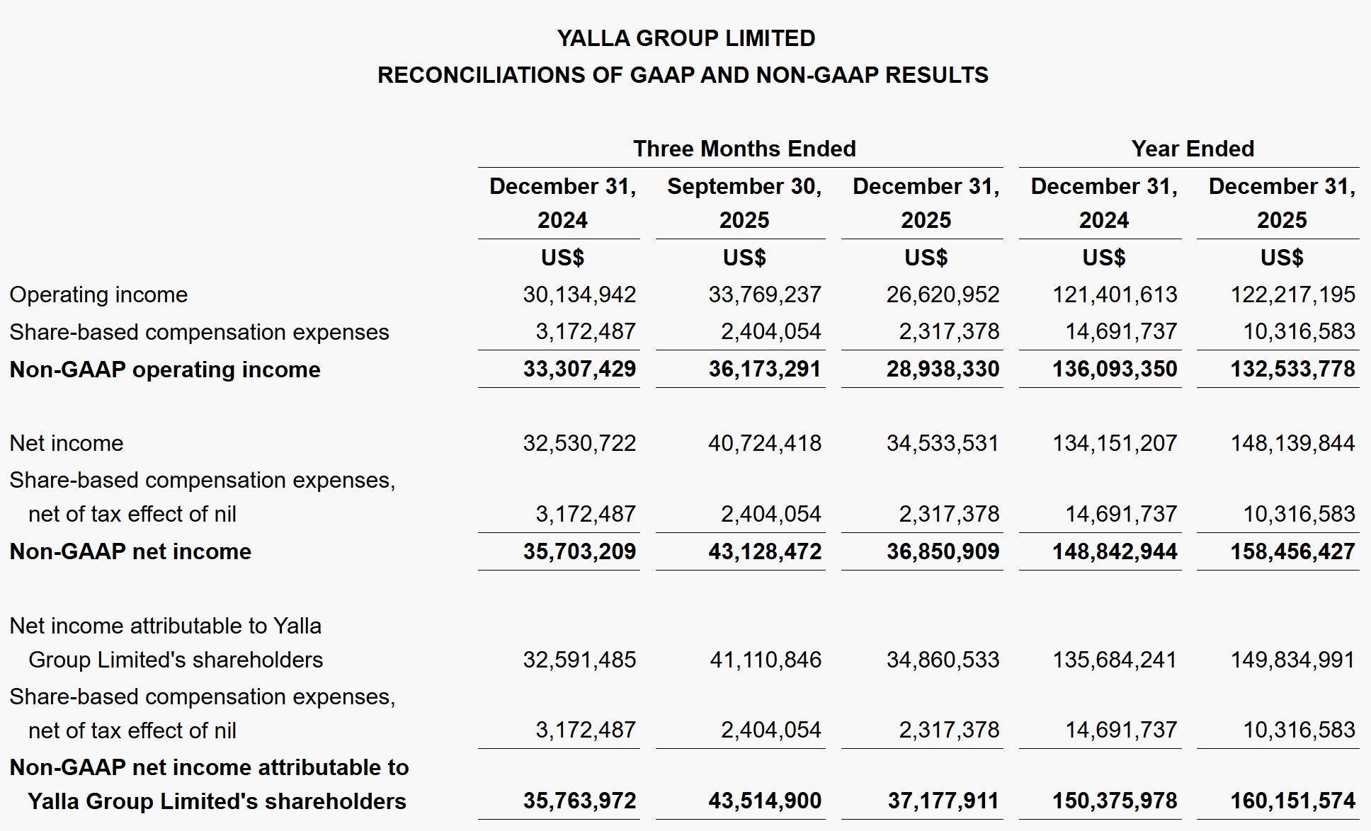 Yalla在2025年第四季度Non-GAAP下运营利润为2890万美元,上年同期的Non-GAAP下运营利润为3330万美元。