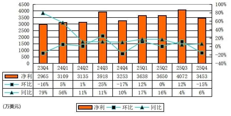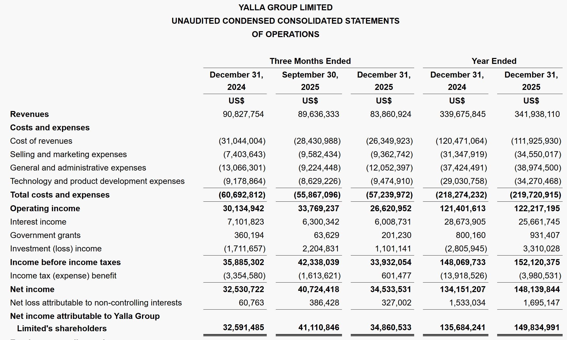Yalla在2025年第四季净利为3450万美元,较上年同期的3250万美元增长6.2%;经调整净利为3690万美元,较上年同期的3570万美元增长3.2%。