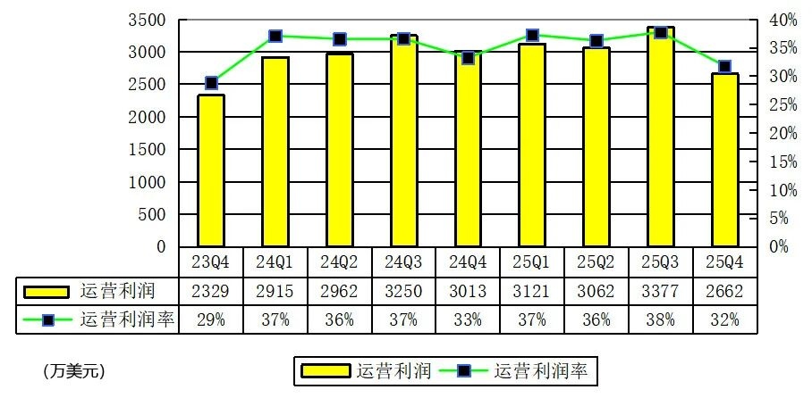 Yalla在2025年第四季度运营利润为2662万美元,较上年同期的3013万美元下降11.63%;Yalla在2025年第四季度运营利润率为32%。