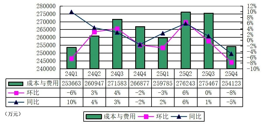 信也科技2025年第四季度成本与费用为25.4亿元,较上年同期的26.69亿元下降5%。