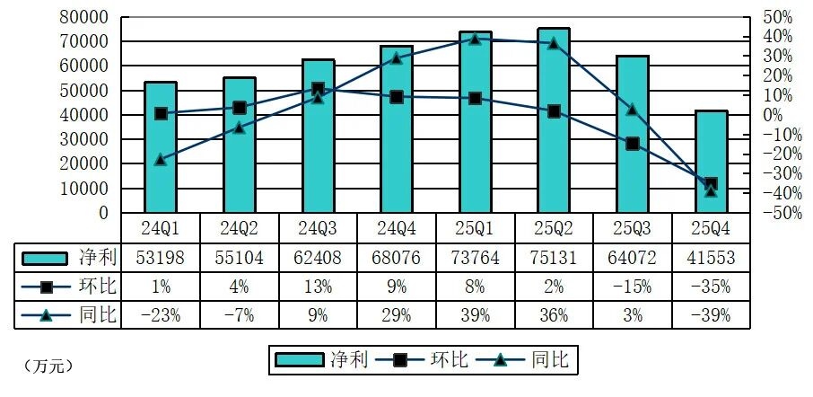 信也科技2025年第四季度净利润为4.155亿元(5940万美元),较2024年同期的6.808亿元下降39%。