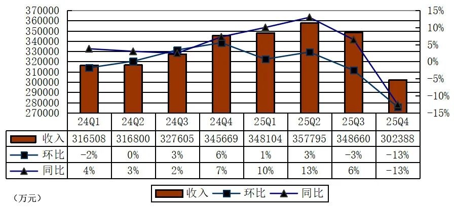 信也科技2025年第四季度营收为30.24亿元(约4.32亿美元),较上年同期的34.57亿元下降13%。
