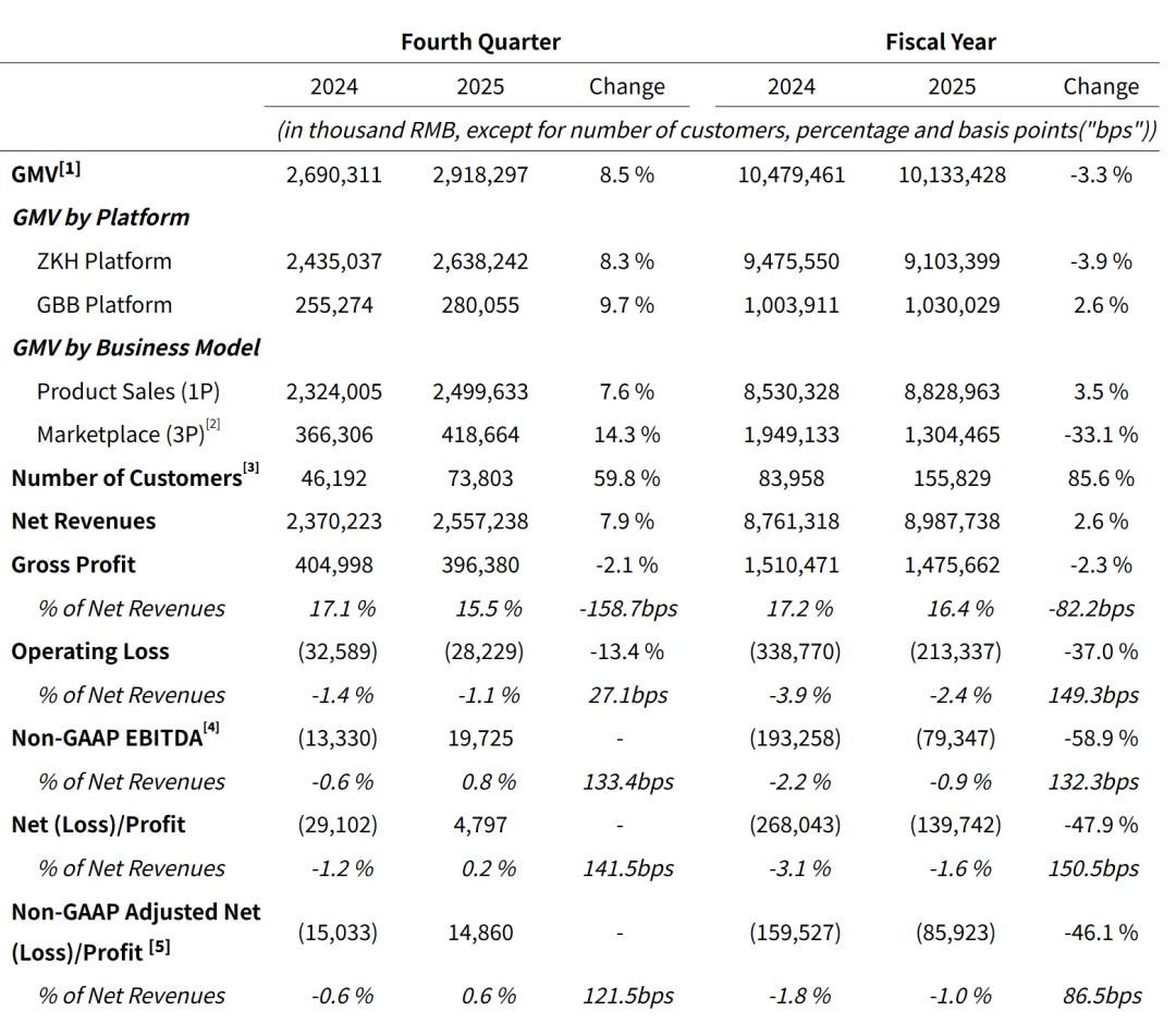 MRO采购服务平台震坤行(NYSE:ZKH)昨日发布2025年第四季度及全年业绩报告。