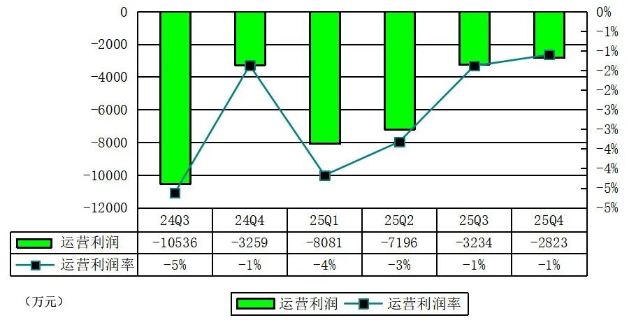 震坤行2025年第四季度运营亏损为2823万元,上年同期的运营亏损为3259万元;震坤行2025年第四季度运营利润率为-1.1%,上年同期的运营利润率为-1.4%,运营利润率最近几个季度运营利润率一直在持续改善。