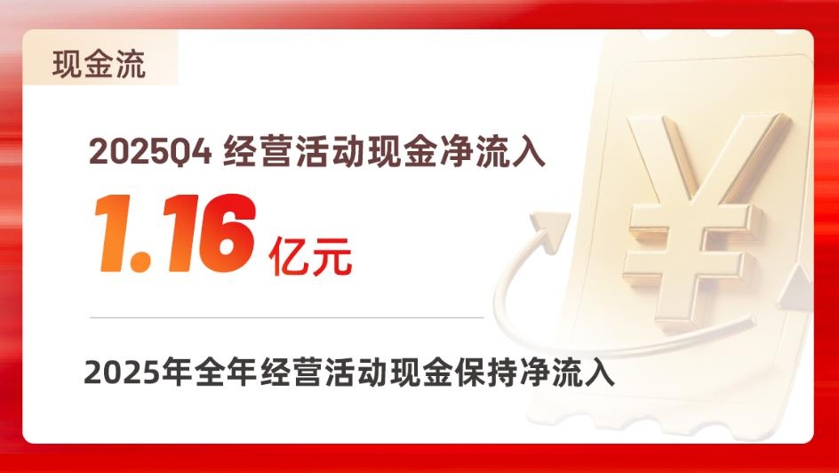 震坤行2025年第四季度经营活动现金净流入为1.16亿元,2025年全年经营活动现金保持净流入。