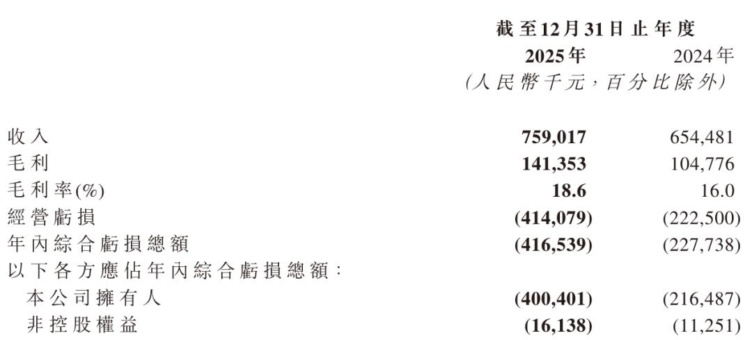 佑驾创新2025年运营亏损为4.14亿元,公司拥有人亏损为4亿元。