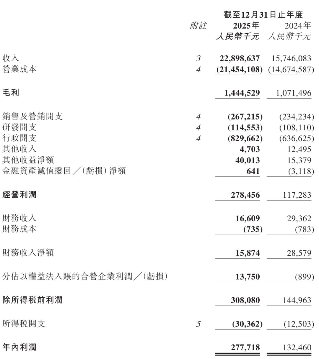 顺丰同城2025年经营利润为2.78亿元,年内利润为2.77亿元。