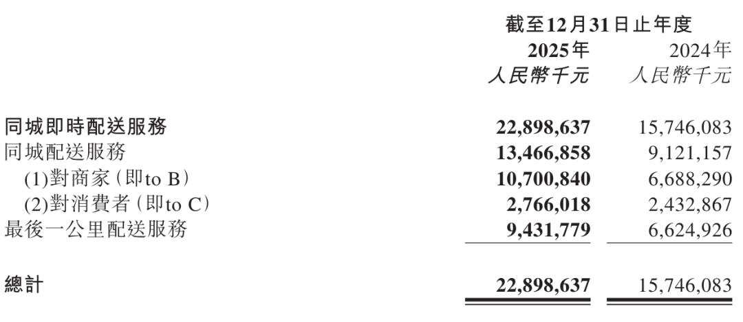 顺丰同城2025年同城配送收入134.67亿元,较上年同期的91.2亿元增长47.6%;最后一公里配送服务收入为94.32亿元,较上年同期的66.25亿元增长42.4%。