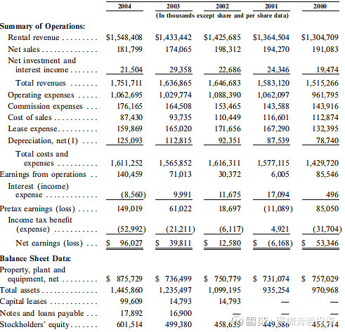 以2004年的资产负债表为例,UHAL的note and loans payable 只有1782万美元,而净资产高达6亿美元,整个公司的财务数据非常健康,收益强劲。