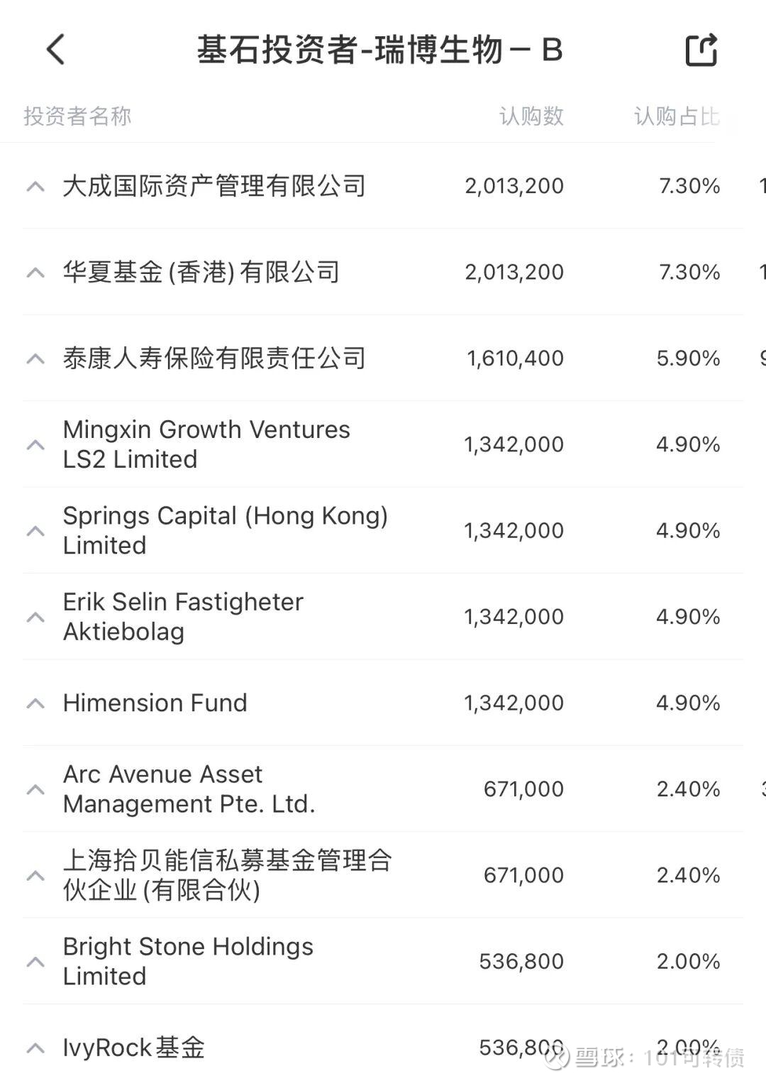 瑞博生物-B此次IPO引入了11家基石投资者,占比近48.9%。