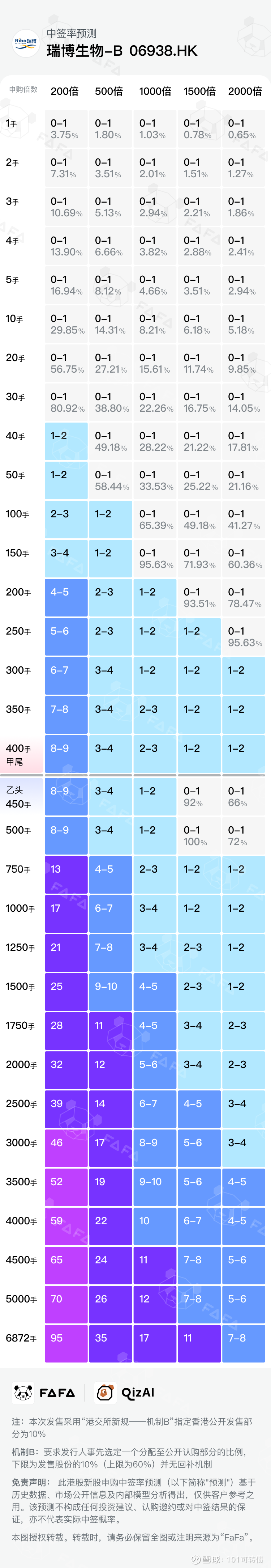 瑞博生物-B采用机制B,回拨10%;全球发售2748.74万股,香港发售是274.88万股,一手是200股,共计13744手;甲尾申购需要47万本金,乙头申购需要53万本金;智谱、精锋医疗-B、天数智芯、MINIMAX-WP、金浔资源、瑞博生物-B这6个新股存在资金冲突,只能挑着打;现在倍数是15倍了,预计最终会在100倍左右;由中金和花旗保荐,有基石,有绿鞋,中金历史保荐项目还可以,花旗比较一般。