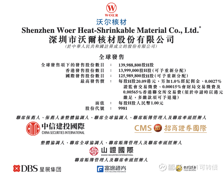 沃尔核材采用机制B,回拨10%;全球发售1.40亿股,香港发售1399.90万股,一手是200股,共计69995手;甲尾申购需要41万本金,乙头申购需要61万本金;海致科技团跟沃尔核材这2个新股存在资金冲突;现在倍数是18倍了,等上一批新股资金释放后,预计最终会在1000倍左右;由中信、招商联合保荐,有基石,无绿鞋,历史保荐项目相对还不错。
