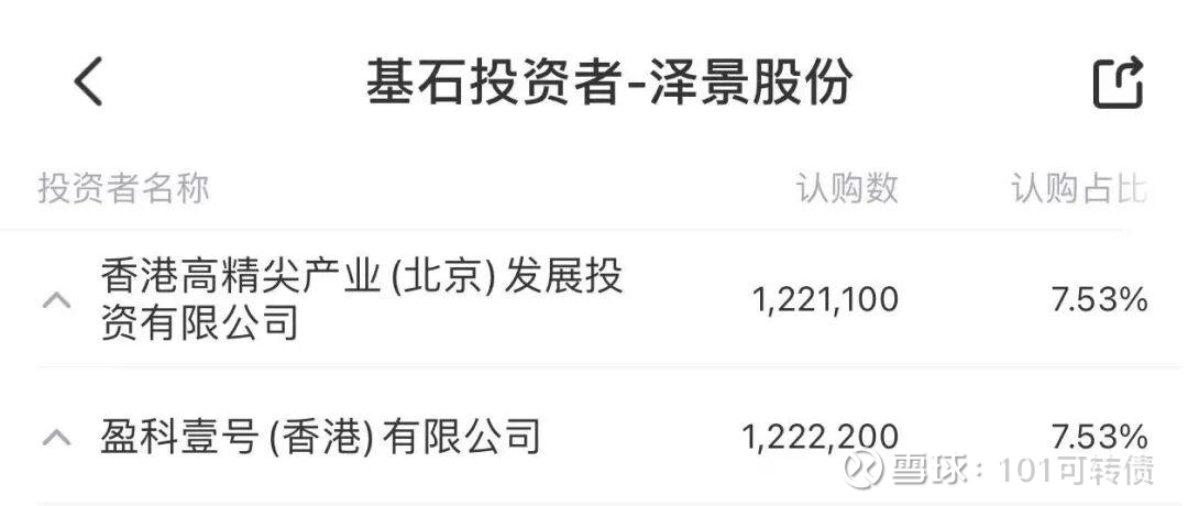 泽景股份此次引入了2家基石,占比15.06%的份额。