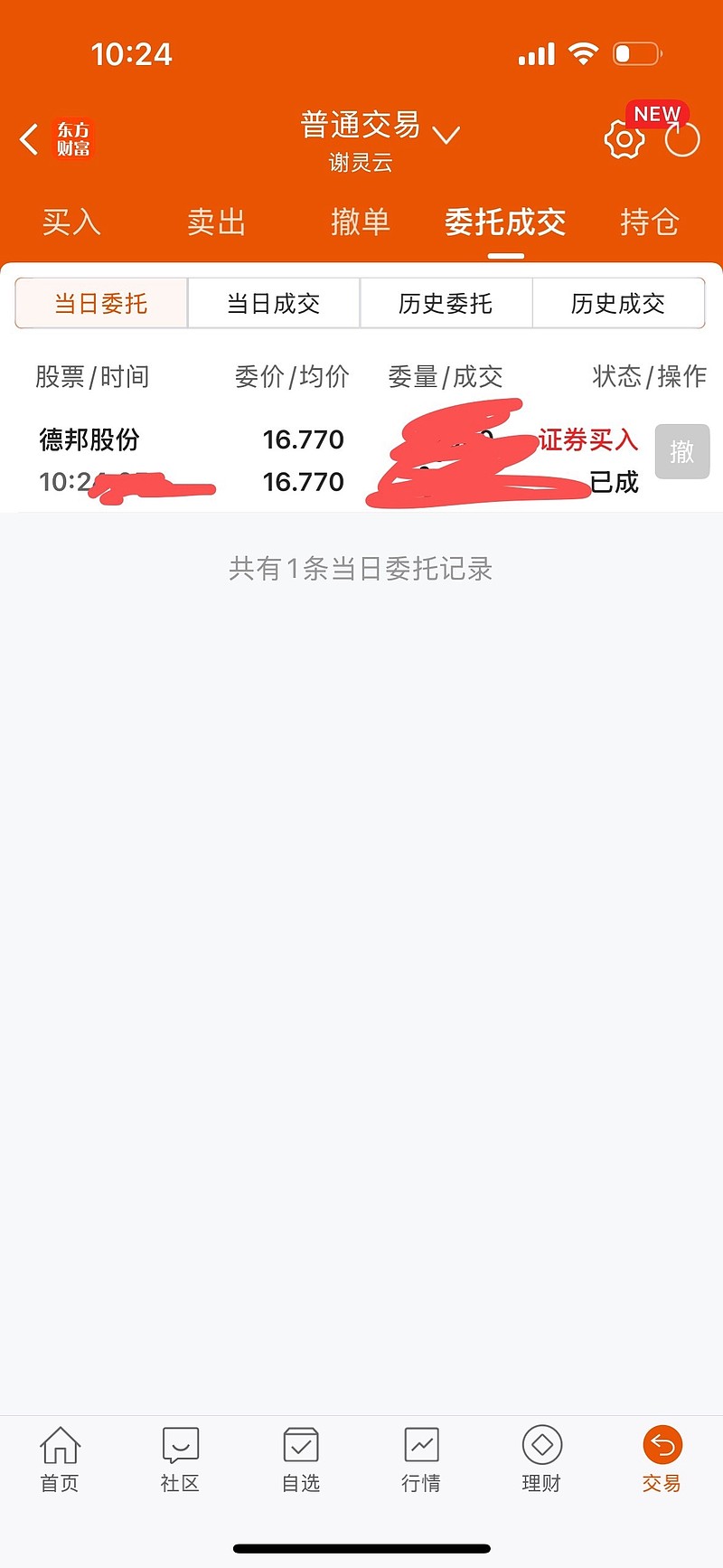今天16.77元继续买入德邦,炒新一族魏巍做多韵达做空德邦,我做多德邦看空未来韵达即便股价继续上涨20%到30%也守不住,除非申通圆通德邦涨幅远大于韵达。炒新一族不断对倒砸盘德邦,每次拉升申通韵达圆通前提前埋伏在德邦,然后大家买入德邦时候他就出货砸盘。那么回调的时候,如果大家也买入,我看他下一次还有多少筹码砸盘。$德邦股份(SH603056)$ $申通快递(SZ002468)$ $韵达股份(SZ002120)$