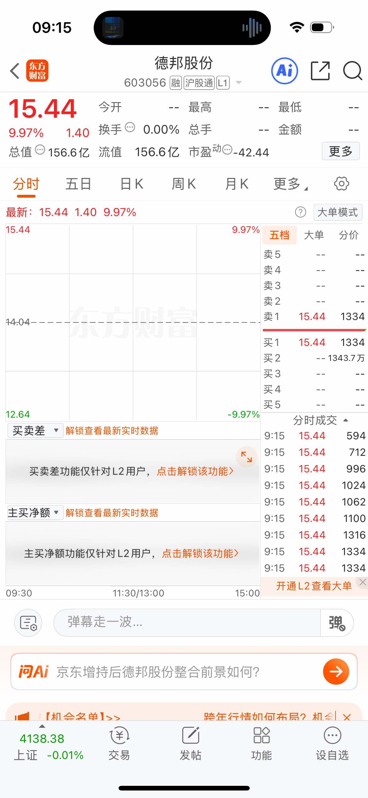 德邦股份今天集合竞价时候最高有207亿以上买单,可见人气特别高、特别活跃!有今天买进去的投资者吗?来说说你是什么时候挂的买单,是普通投资者还是有特殊渠道?(我就好奇普通人如果第一时间在公告后马上挂单能不能买得到)
