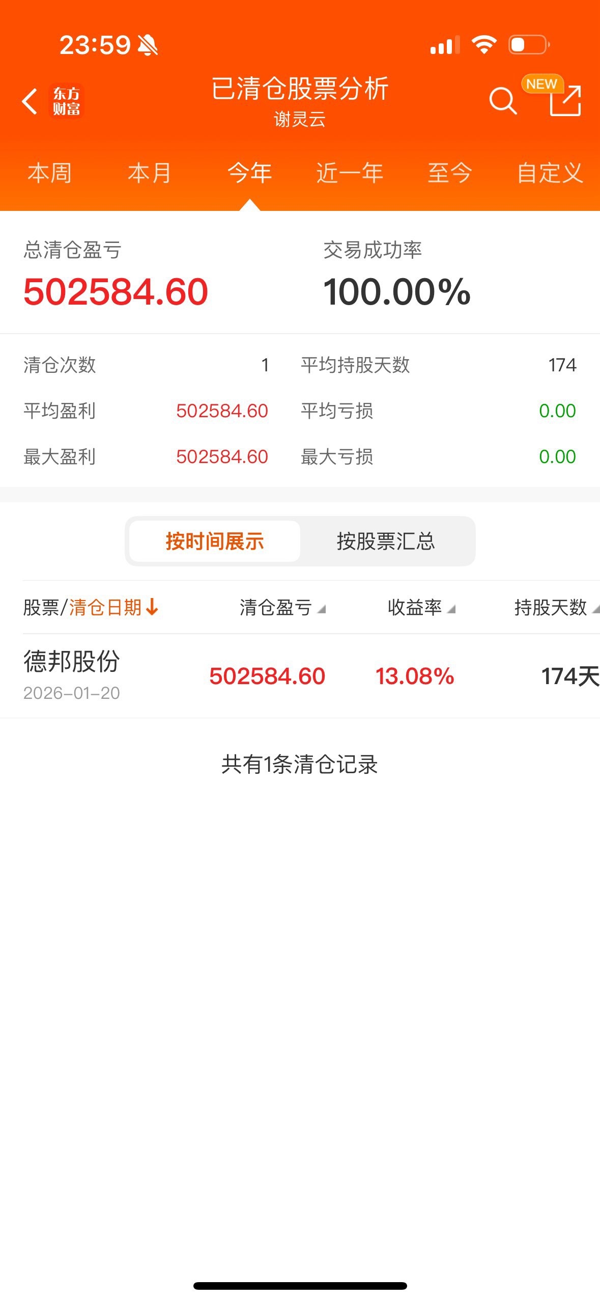 德邦这只股票只能说不亏,我看了一下2025年7.30日开始慢慢买,到目前将近6个月,也赚钱了但是只有十几个点。所以赚的不多!