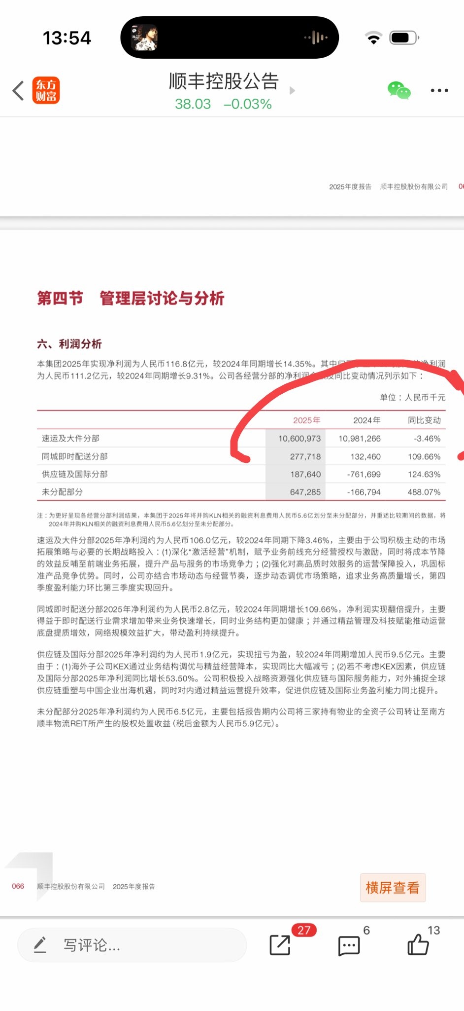 我帮你们拆分顺丰控股的业务和盈利情况,你就知道顺丰有多低估了!速运和大件利润下降3亿,主要是经济快递价格战和快运价格战导致,高端快递利润其实是增长的
