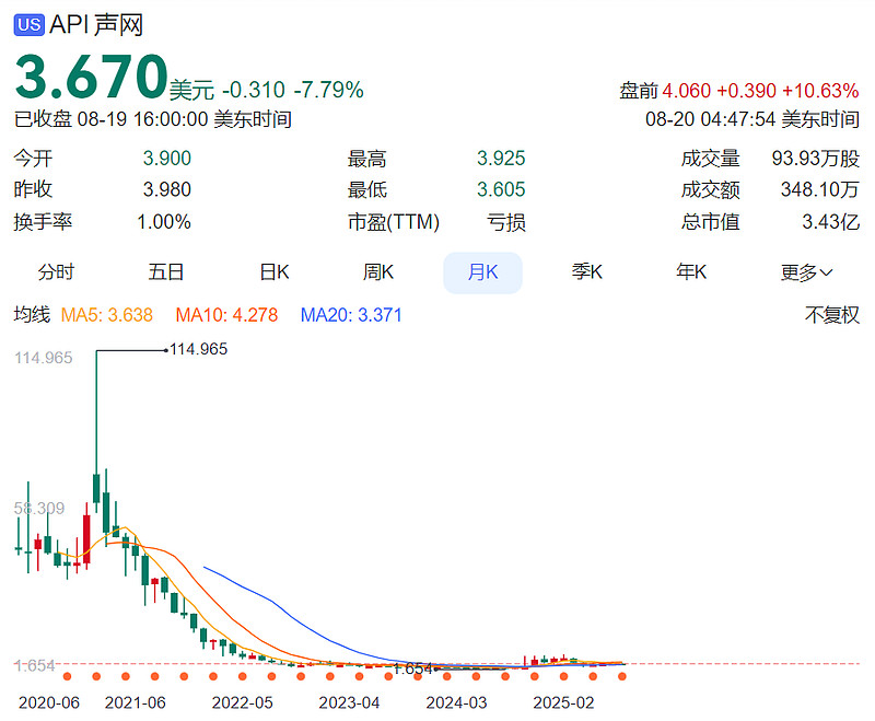 昨天,实时互动云服务商声网宣布,公司董事、CTO钟声离职,其运营职责将移交给CEO赵斌。与此同时,声网两大高管Tony Wang、王静波被任命为公司董事。截至目前,声网股价为3.67美元,较发行20美元跌去81%,市值仅剩下3.43亿美元,如今又失去一员大将,有点惨!