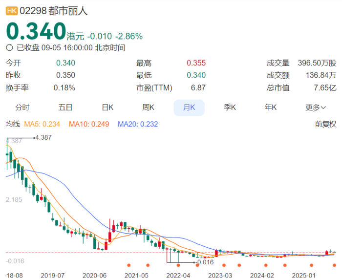 那么问题来了,都市丽人如此倚重“卖楼”业务、线下扩张愈发保守,能否持续带来稳定的上升空间?这仍需进一步观察,让子弹先飞一会。在我看来,都市丽人转型取得一定的成果,但根基并不牢固,业绩增长仍存在不确定性,一大实锤便是其在资本市场并未充分实现价值回归。