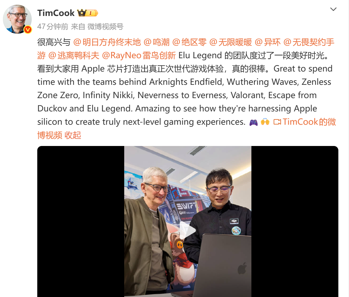 这等于向所有开发者宣告:看,这就是空间计算游戏的标杆!硬件厂商都能做出这样的体验,你们专业的游戏大厂,还不赶紧跟上?甚至苹果CEO蒂姆·库克还为此亲自站台背书。