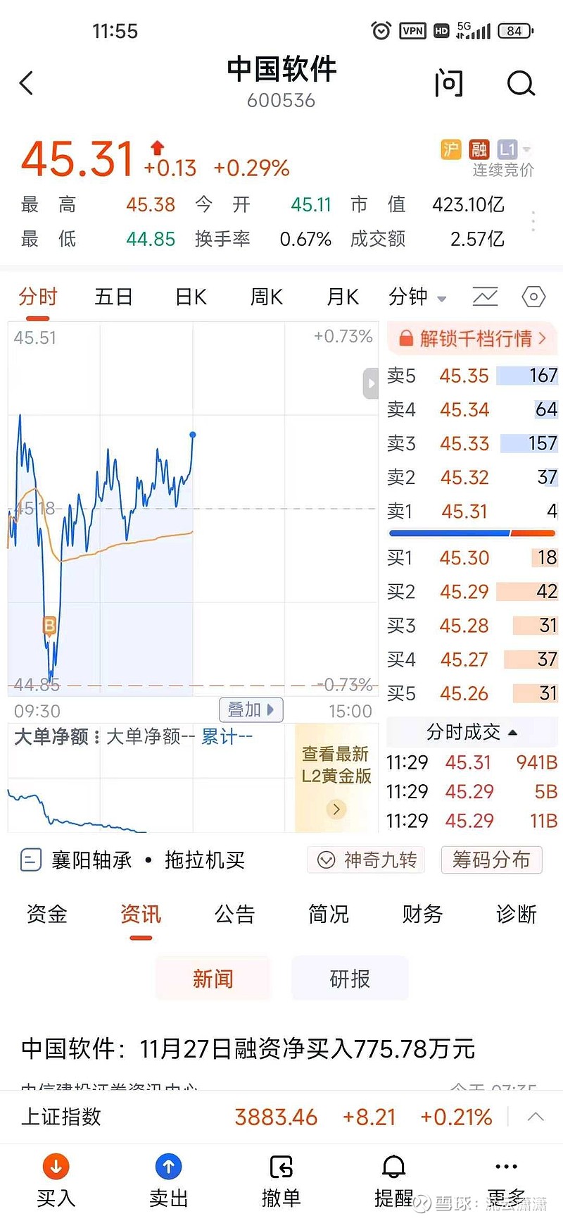 五年来断断续续持有过几次.早上起来挂了个44.86的单,没想到成交了..有点不妙的感觉.