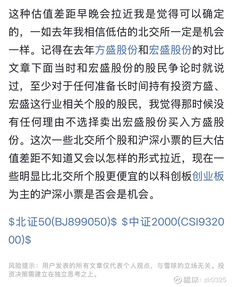 当时写的内容:“这种估值差距早晚会拉近我是觉得可以确定的”应该说已经确定实现了,那时候明显比北交所个股更便宜的以科创板创业板为主的沪深小票确实是机会。
