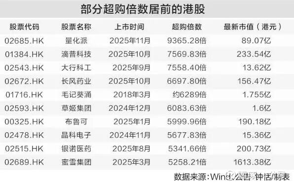 事实上,今年的港股新股市场诞生了一系列超购纪录。这场狂欢背后,是监管政策优化、赚钱效应凸显与热门赛道筹码集中等因素的共振。不过,过往有案例显示,超购倍数与长期价值未必正相关,部分企业上市后市值大幅缩水。