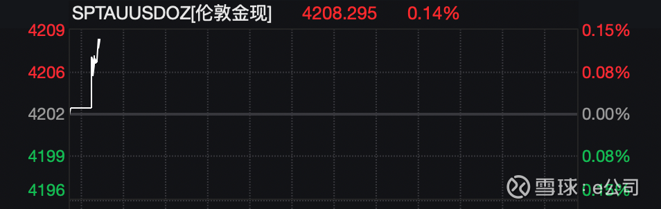 12月4日早盘,现货黄金高开并快速拉升。截至发稿,伦敦金现报4208.295美元/盎司,涨幅为0.14%。