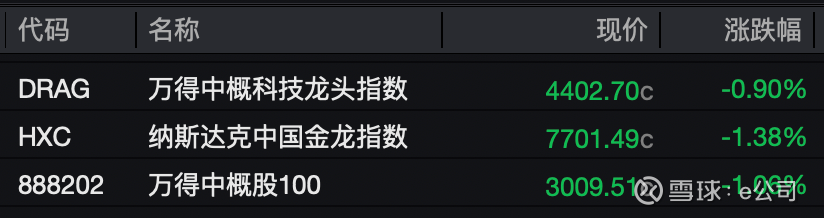 热门中概股多数下跌,纳斯达克中国金龙指数收跌1.38%。蔚来、小鹏汽车跌超4%,理想汽车、新东方跌超3%,哔哩哔哩、名创优品跌超2%,阿里巴巴、百度、拼多多跌超1%。