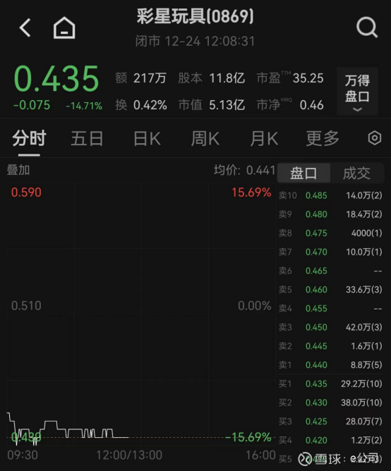 12月24日,彩星玩具收盘跌14.71%,彩星集团跌近3%。
