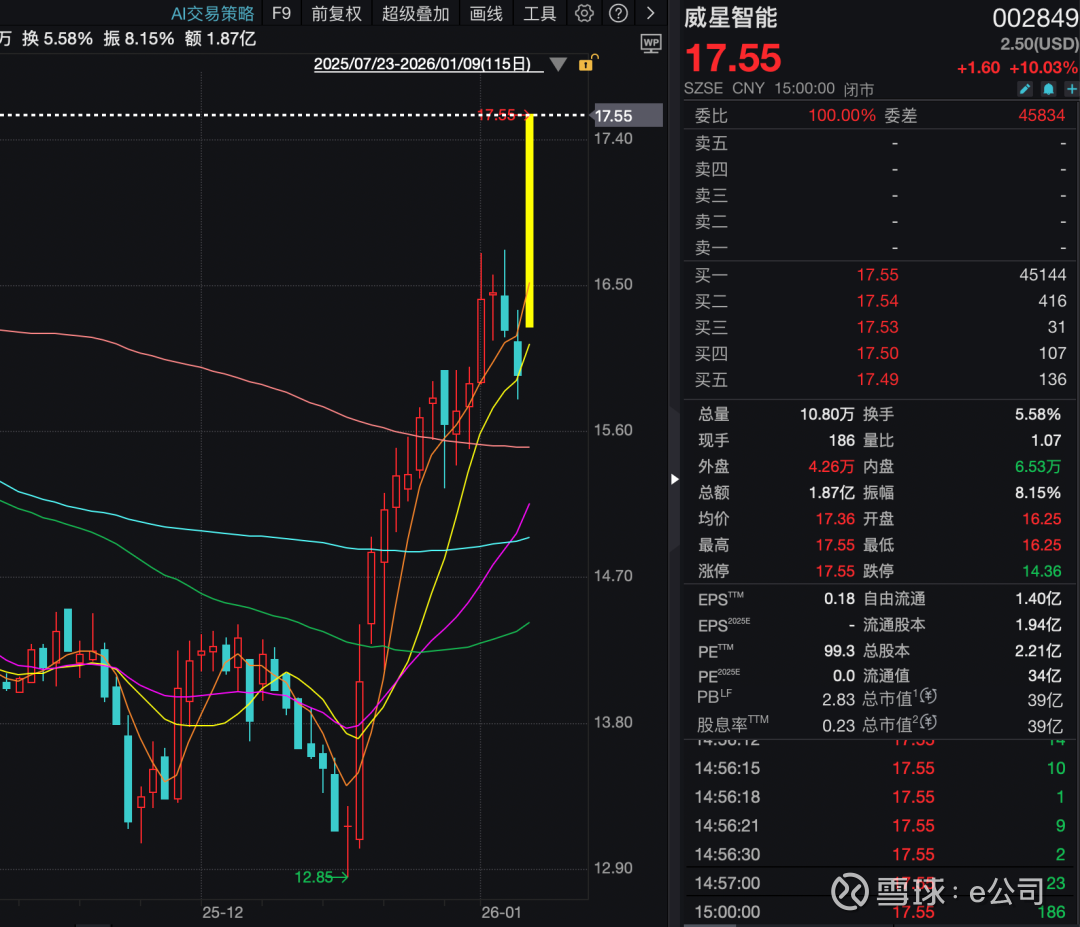 威星智能主要从事智慧水燃信息系统平台、智能燃气表终端、智慧水务终端、新一代电子计量仪表等研发、生产、销售及服务。1月9日,该股涨停。