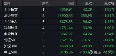 今日早盘,A股震荡调整,上证指数低开跌破4100点,深证成指也失守14000点,创业板指3300点亦被击穿,科创50、北证50等均有所下跌。下跌个股远远多于上涨个股,市场成交有进一步萎缩的趋势。