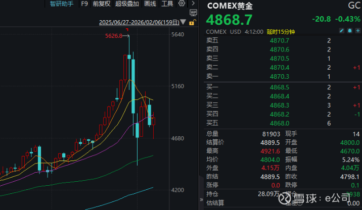 实际上,2026年1月末COMEX金价曾一度达到5626.8美元,再创历史新高;近期震荡调整,COMEX金价已回落至4800美元附近。