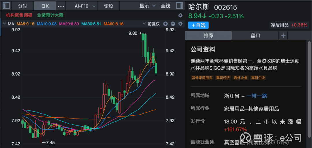 杯壶行业龙头哈尔斯(002615)接受53家机构调研。
