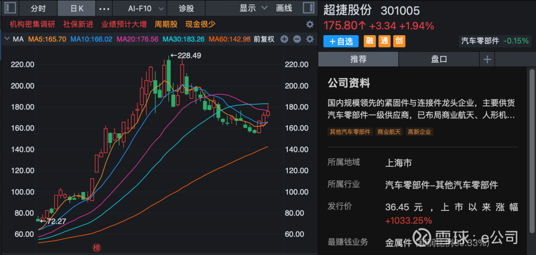 据超捷股份介绍,该公司主业汽车业务未来增长点在于海外市场和新客户拓展等方面。汽车零部件出口的拓展,海外市场是该公司的战略重点之一,该公司与麦格纳、法雷奥、博世等国际一级供应商多年保持良好合作关系,为海外市场拓展提供了良好基础。国内汽车零部件业务增长动力为新客户开发,包括蔚来、比亚迪、汇川、星宇等重点客户,以及产品品类扩张、单车价值量增长等。
