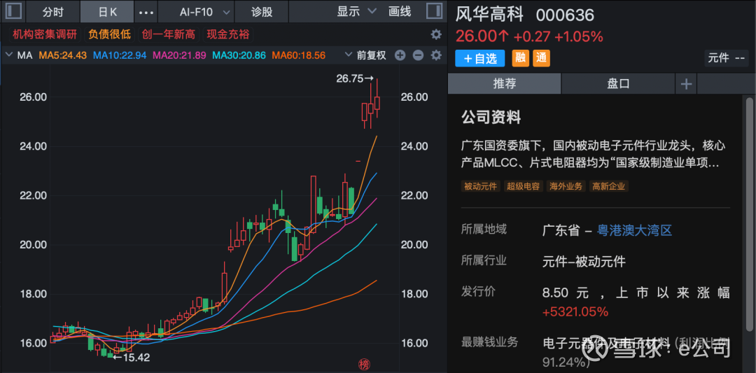 调研情况显示,风华高科当前已形成智能终端、工控、汽车电子及家电等主要市场,同时正加快布局AI算力、低空经济、储能等新兴应用领域,高端产品与特殊产品占比稳步提升,高端化转型进程加快。