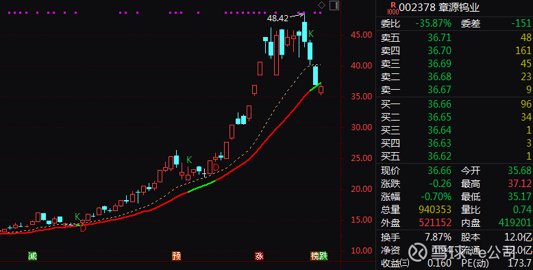 章源钨业作为国内钨产业链完整的龙头企业,覆盖采矿、冶炼及深加工全环节,拥有4座采矿权矿山,钨资源储量占全国约5.33%。2026年以来,该公司股价大幅上行,从最低约14.16元/股,涨至3月中旬最高48.42元/股,涨幅超过240%。