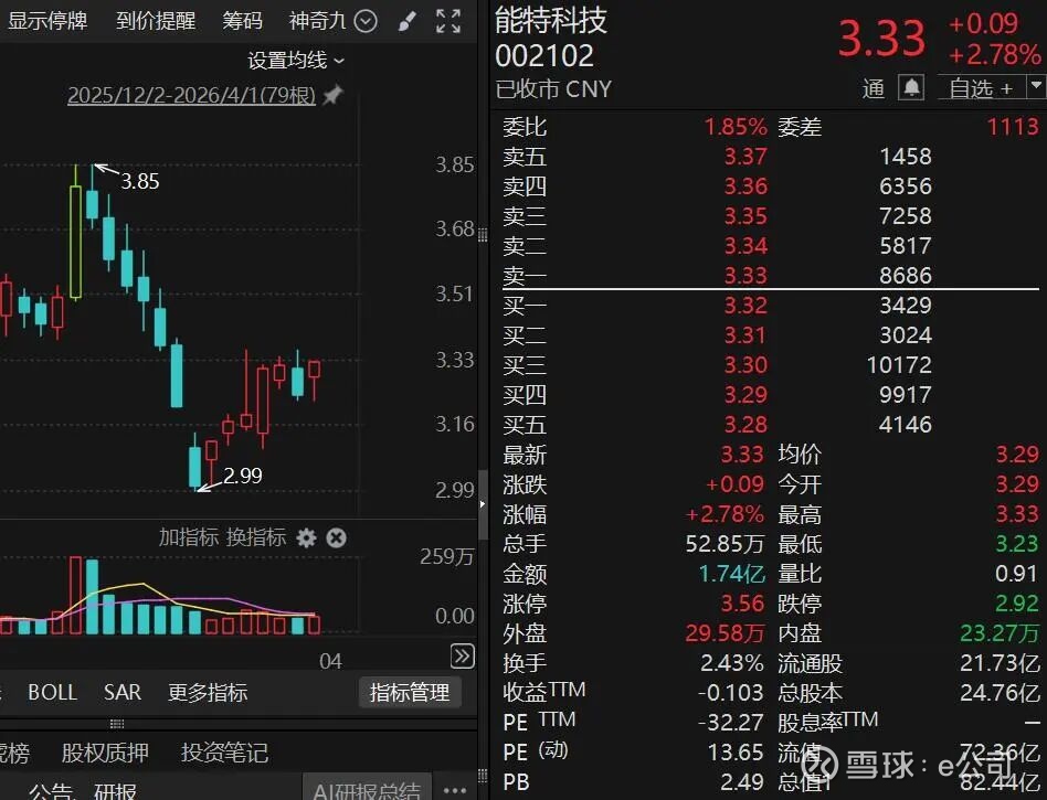 截至4月1日,能特科技市值约82亿元。截至2025年三季度末,公司股东约4.8万户。