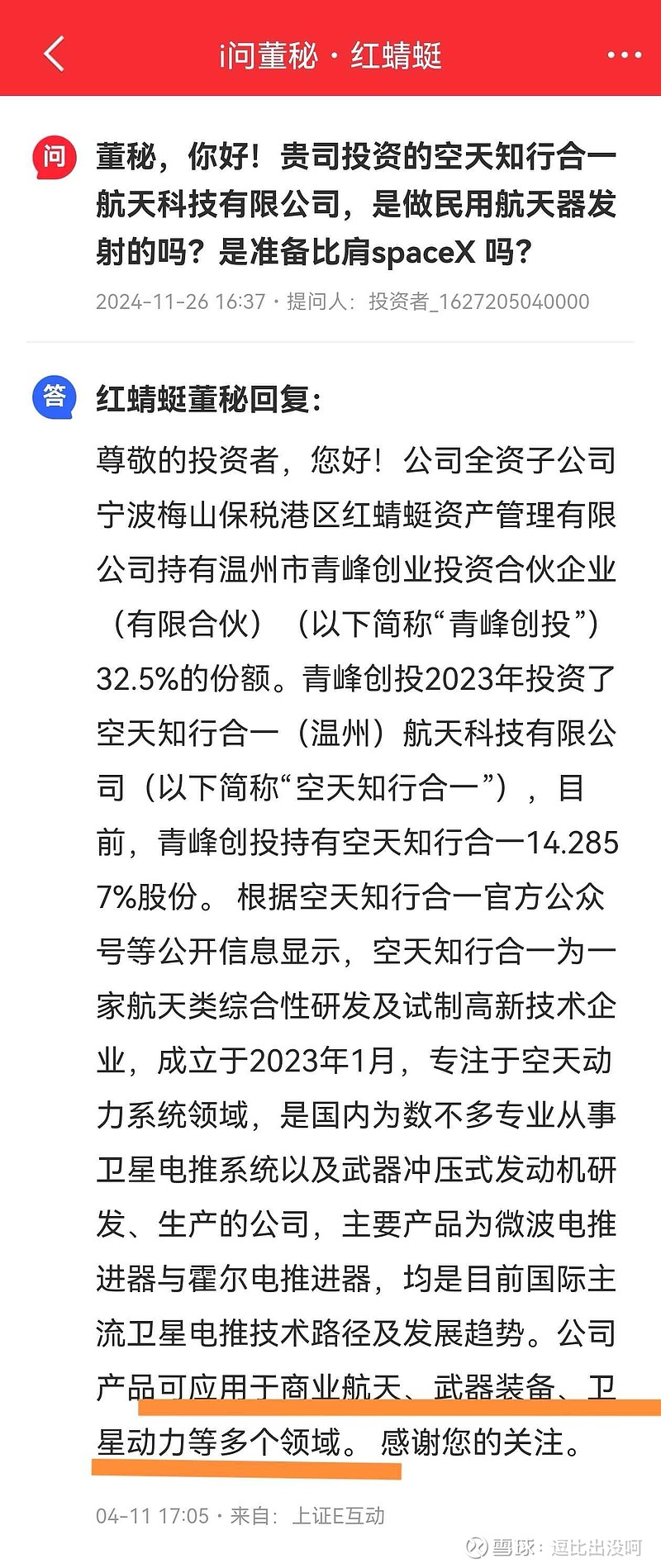火箭跟卫星都要用到霍尔电推进器,还可以用在武器装备上,