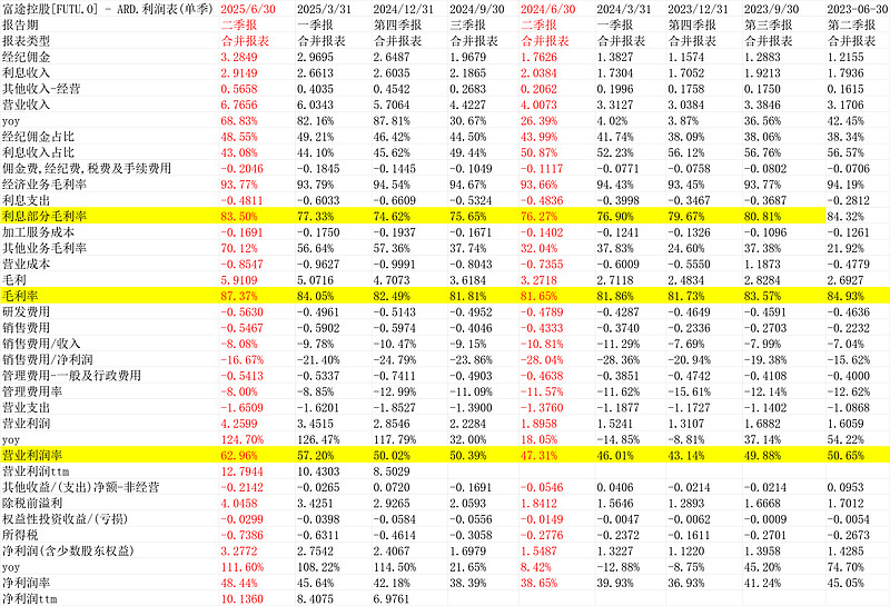 扣税后最终净利润2025Q2是0.4157亿美元,yoy14倍,净利润率29.97%。不注意是不少觉得29.97%和富途的48.44%差别不大?错了,这个是个数学幻觉。