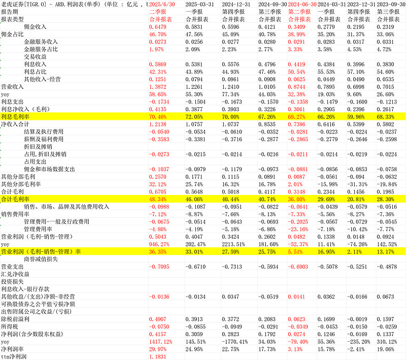 老虎的利息分部毛利率70.46%而2024Q2是69.27%,基本没有提升,这大幅弱于富途。
