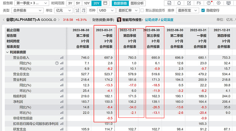 谷歌其实也是,但别看现在如日中天,当初的财报也是收入逼近0增长,利润连续下滑: