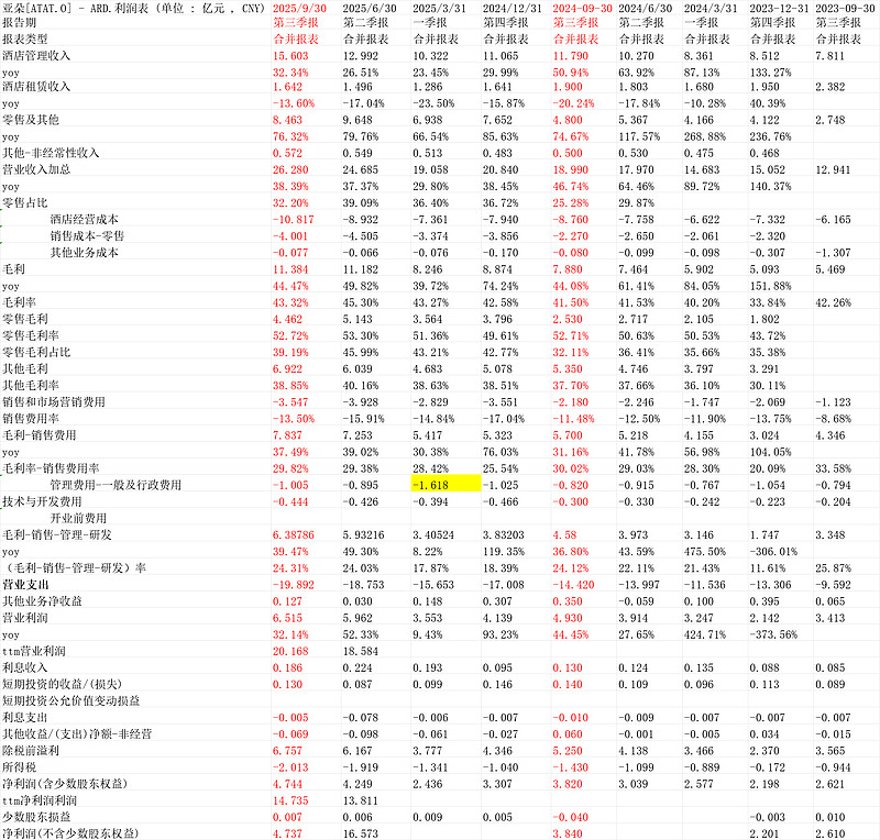 第二个,我们比较a股的体感,像白酒的五粮液泸州老窖洋河,医美的巨子锦波生物,宠物食品的中宠乖宝等,Q3消费股降速明显,这个意义上,亚朵我认为是优秀的。