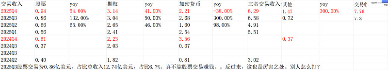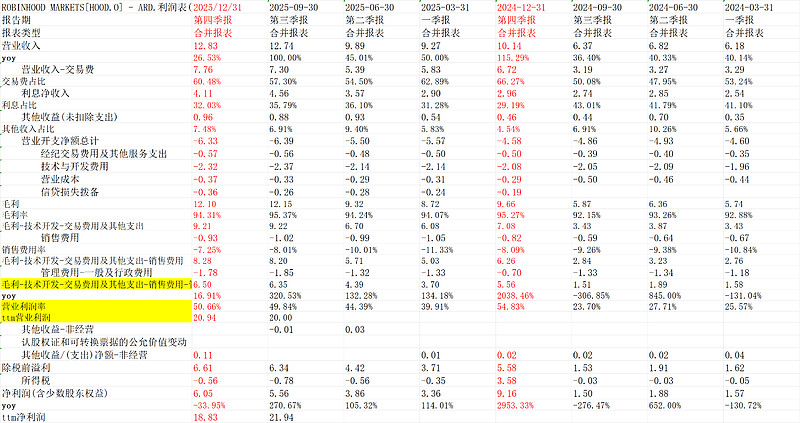 这个数据是在Q4比特币不断调整下取得的。比特币2025Q4跌幅22.4%,hood上交易的偏小币种只会跌幅更大,换言之,扛住了区块链的影响(或者说,占比越来越小,对单一资产依赖小)。