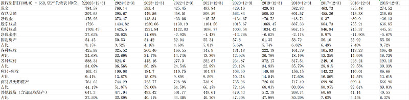 20260227,携程净现金476.93亿,净现金率27.63%,占用上下游合计是“各种应付-各种应收”162.4亿,占比净资产是9.4%,那100%的净资产+9.4%的上下游,得到27.63%的净额现金,其他钱81.77%去了哪里呢,①固定资产,这个54.45亿,3.15%;②商誉及无形资产,全资收购的去哪儿啊等并表导致商誉(出价高于净资产多出来的部分)622.68亿无形资产130亿,占比44.13%,①②合计占比47.28%,这部分和经营高度相关,算估值ev的时候是不能扣除的;③其他投资613.75亿,占35.56%,这里边其他长期投资(没并表的)613.75亿,没反应在利润表的收入和营业利润项,估值如果用营业利润这部分就是额外送的,估值算ev可以扣减的,所以重要,大部分是些啥呢,附在后边。①②③合计是占比82.84%,基本和前边81.77%近了,其他杂项小项就忽略了。