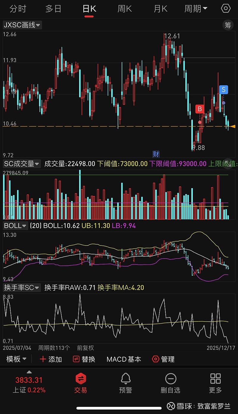 12.17更新:10.85全部卖出,获利4.73%(从这两天的趋势看,果然是只适合短线投机的股)