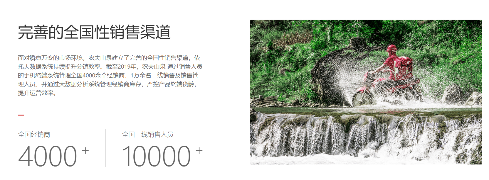 ③,全品类协同,提升单店产出,实现渠道价值最大化。经销商通过一张分销网络,同时分销包装水、茶饮料、功能饮料、果汁饮料等全品类产品,大幅提升了单车配送效率、降低了单品类的渠道成本;终端门店通过农夫山泉的全品类产品,能够覆盖消费者全场景的饮品需求,大幅提升单店的坪效与盈利能力。