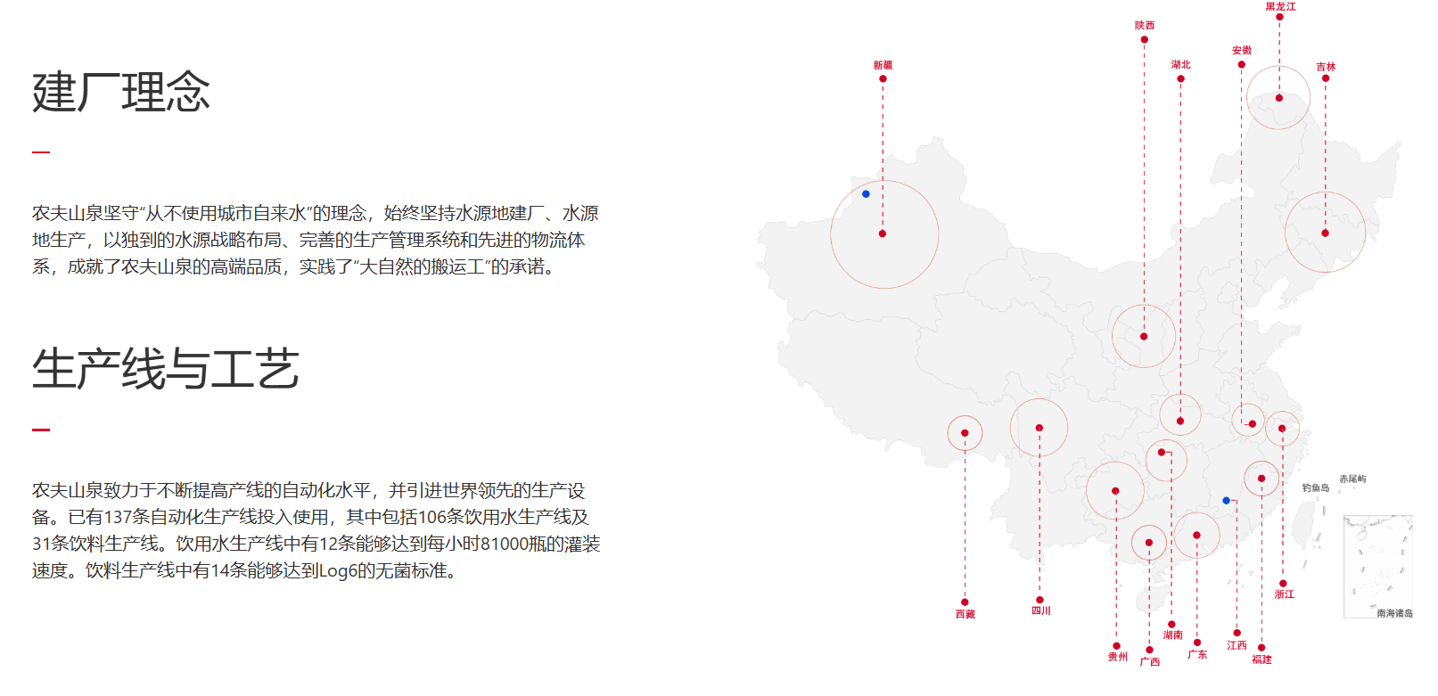 农夫山泉2025年新增湖南八大公山、四川龙门山、西藏念青唐古拉山 3 个水源地,2026 年初再添云南轿子雪山水源地,截至目前,已在全国布局 16 个优质天然水源地,涵盖山泉水、深层湖库水、自涌泉等多类型优质水源,成为国内拥有天然水源地最多的饮用水企业。 形成了 “全国覆盖、就近辐射、稀缺锁定” 的格局.