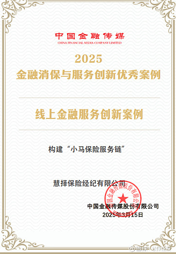 慧择“科技+服务”的深度融合模式,也获得行业权威机构的高度肯定。2025年3月,中国金融传媒发布《2025金融消保与服务创新优秀案例名单》,慧择“小马保险服务链”项目从200家金融机构报送的400余个参选案例中突围,成功入选该榜单,这是行业对其在服务创新、客户权益维护领域实践的官方认可,同期,小马保险服务还斩获2025年度 InsurStar创新媒体奖;同年6月,慧择“小马理赔”服务品牌,被评选为“年度保险中介值得信赖品牌”,今日保评审委员会评价其 “以专业能力+AI工具破解保单流转、理赔纠纷痛点,为行业树立了安心服务的新标杆”。